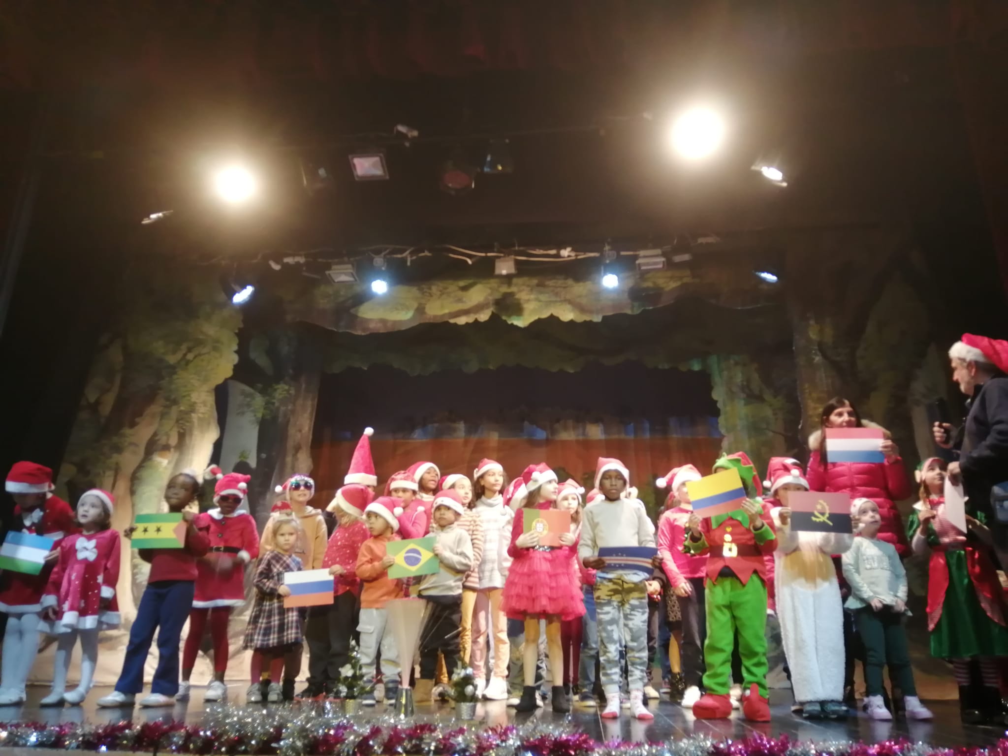 Houve poesia, canções, danças, teatros (de alunos e de mães)…no entanto, um dos momentos altos da festa foi o das “Mensagens de Natal”, transmitidas nos onze idiomas representativos dos países das crianças que frequentam o Centro Escolar de Vila Verde: Portugal, Brasil, Angola, Cabo Verde, S. Tomé e Príncipe, Luxemburgo, Ucrânia, Bielorrússia, Colômbia, Uzbequistão e Rússia.