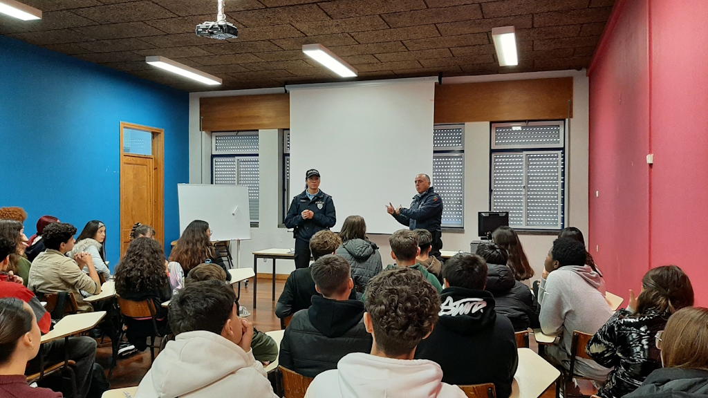 Segurança Rodoviária foi o tema apresentado às turmas do 9.ºano da Escola Infante D. Pedro (Agrupamento de Escolas Figueira Mar) numa sessão de sensibilização dinamizada pelos Agentes da Escola Segura que decorreu nos dias 9 e 10 de janeiro, na escola IDP.