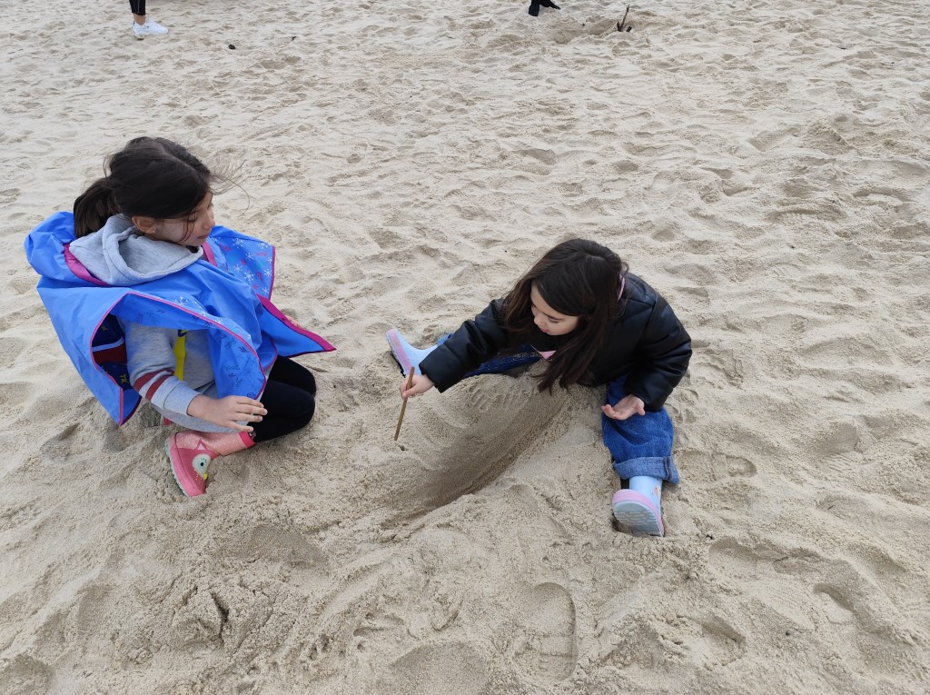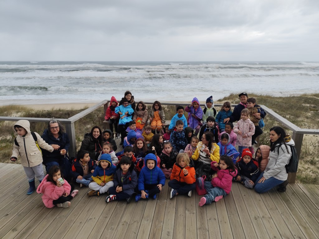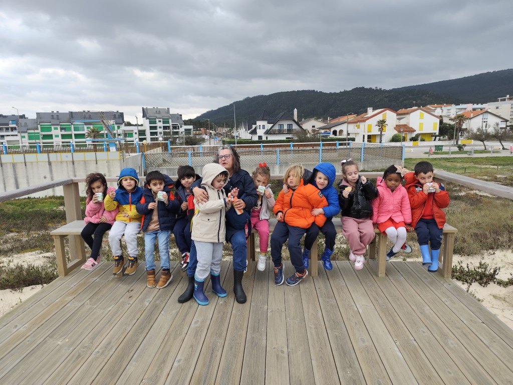 Puderam brincar, correr no longo areal e registar graficamente com o dedo, o seu nome e outros registos, conectando-se com a natureza e explorando, de forma lúdica, o ambiente ao seu redor. Essas experiências ao ar livre ajudam a cultivar a curiosidade e o respeito pela natureza, ao mesmo tempo que estimulam a atividade física e o desenvolvimento social.
