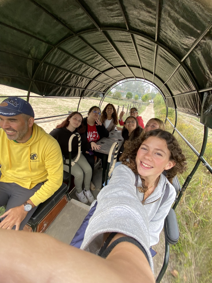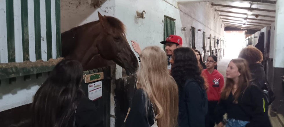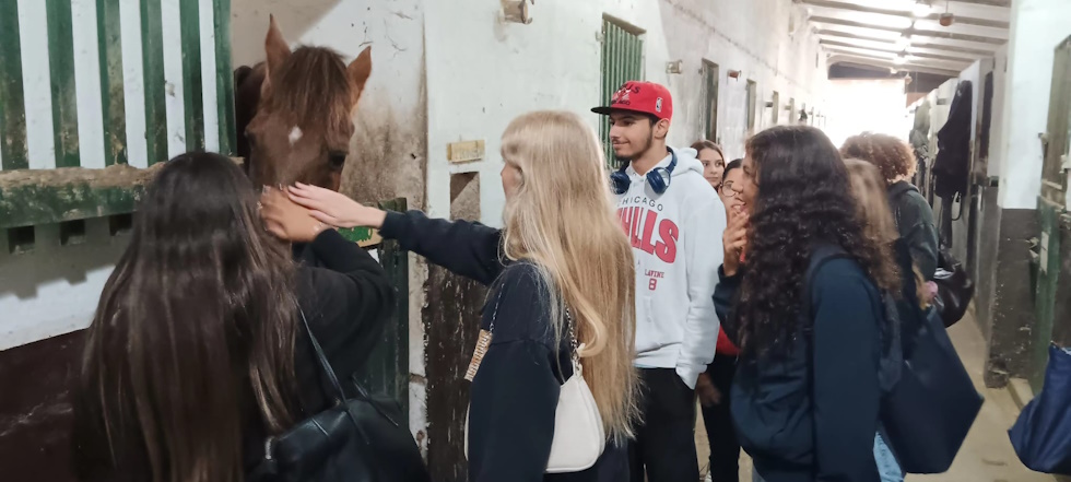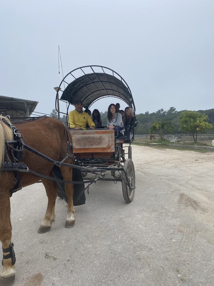 No dia 2 de outubro, celebrou-se o Dia mundial dos animais da quinta. Neste sentido, a turma do Curso Profissional de Animador Sociocutural (10.º ano) deslocou-se ao centro hípico de Quiaios, Wild Emotion (Quinta das Rolas), acompanhada pelas professoras Ana Luísa Nunes e Odete Cabete. Os alunos tiveram a oportunidade de ver os cavalos, as instalações e ter conhecimento das regras e cuidados a ter para a na equitação, bem como as funções de todo o material utilizado. Para além disso tiveram ainda hipótese de contactar com outros animais como, porcos, cabras, coelhos, porcos-da-índia e galinhas. Para finalizar, andamos de charrete pela vila de Quiaios. Os objetivos foram inteiramente cumpridos, tendo sido uma manhã de convívio e diversão entre alunos e também professoras. Agradecemos ao Jorge Ferraz e a toda a equipa por nos proporcionar estes momentos.