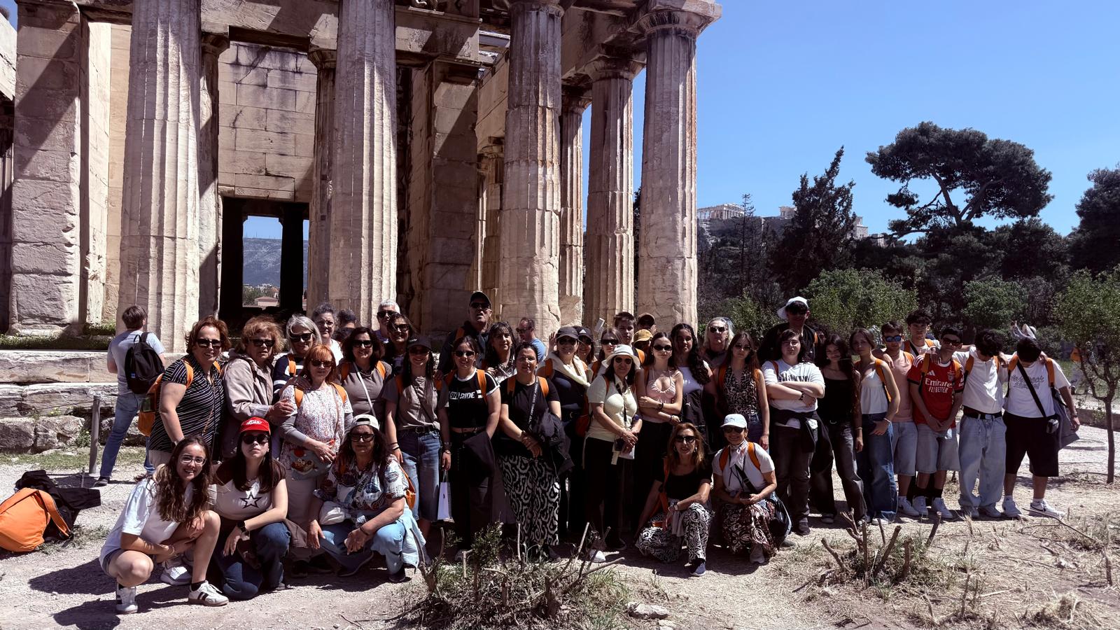 Em Atenas, os alunos ficaram maravilhados ao conhecer a Acrópole, símbolo da civilização clássica e da democracia, e os bairros mais emblemáticos da cidade, onde puderam sentir de perto a vibrante cultura grega.