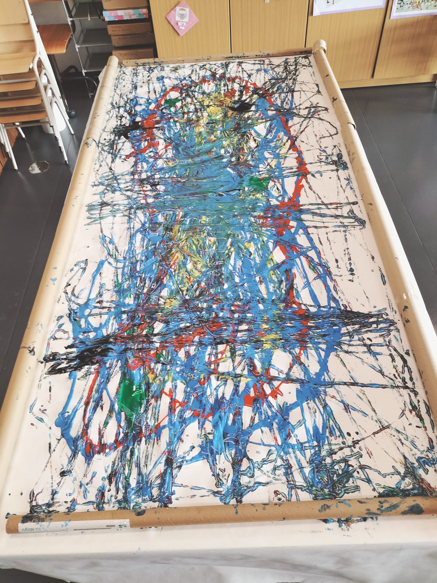 No âmbito das atividades de expressão plástica, as crianças dos 3 aos 6 anos participaram numa experiência artística inspirada no pintor Paul Jackson Pollock, conhecido pelo seu estilo inovador e pela técnica do dripping.